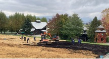 ファーム富田のほぼ中央に位置し、濃紫早咲、おかむらさき、ようてい、はなもいわのファーム富田で栽培されているラベンダーが揃った畑です。花色の異なる4種類のラベンダーが紫色のグラデーションを作り出します。